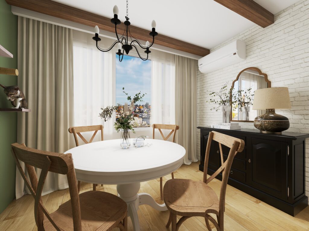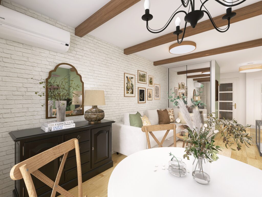 Punktem wyjścia stała się obecna w salonie ściana z białą cegiełką. Choć pierwsze oczekiwania były skierowane na styl boho, podczas naszych rozmów i podsyłanych inspiracji wyczułam słabość do dawnej elegancji, giętych nóżek. Wynurzyło się też marzenie o belkach na suficie i stole na solidnej, zdobionej nodze🤍